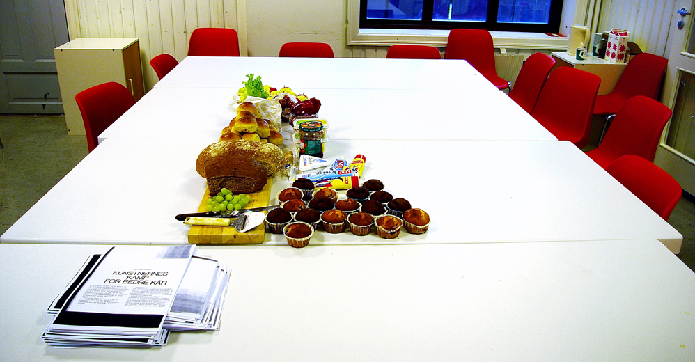 Kunstnerne Arne B. Langleite (NO) og Sigbjørn Bratlie (NO) gjør en slags boklansering av den fiktive forfatteren Mikkjel Plassen.